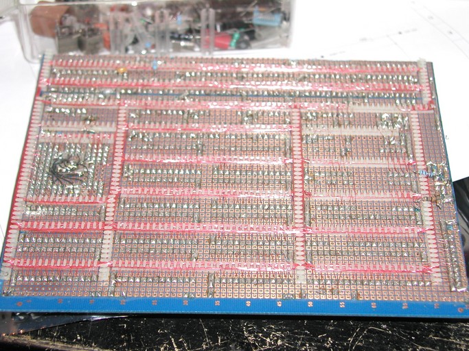 This was called verowire. It took a couple of days to wire a design this complicated, and despite appearences the result was very reliable. Some of my verowired prototypes from the early 80's still function.
